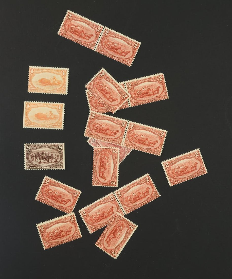 Sold9 1898 COMPLETE SET TRANS-MISSISSIPPI STAMPSScotts 1980: 1898 Complete Set of 9 Trans-Mississippi Stamps. Mint, hinged, Unused. 285, 286, 287, 288, 289, 290, 291, 292, 293. Produced in conjunction with the 1898 Trans-Mississippi International ESee Sold Price
