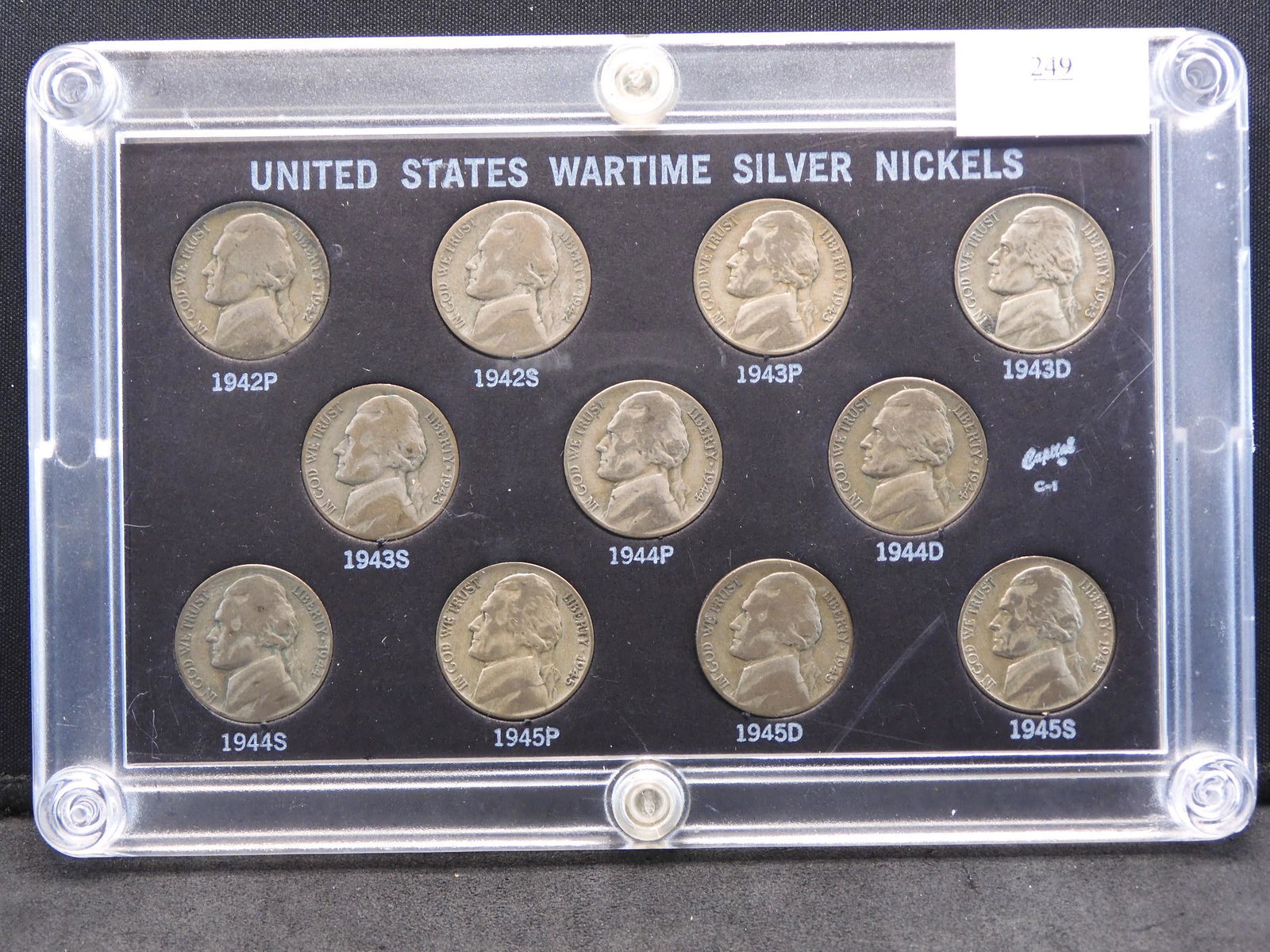 Sold1942-1945 Brilliant Uncirculated 11 Coin U.S. Wartime1942-1945 Brilliant Uncirculated 11 Coin U.S. Wartime Silver Nickels Set Housed in Capital Plastic Holder.See Sold Price