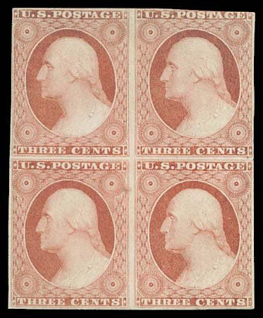 USA #11var 3¢ DULL RED, BLOCK WITH RECUTS
