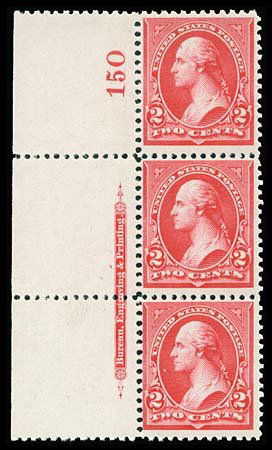 USA #252 WASHINGTON 2¢ CARMINE PLATE # STRIP