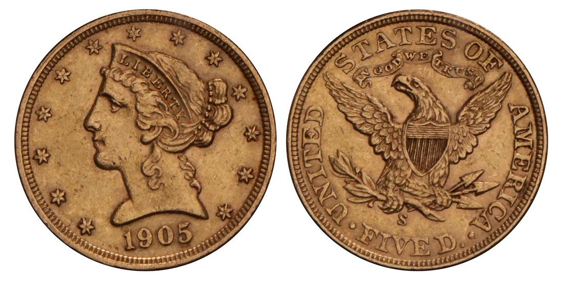 USA. 5 Dollars. 1905 S.