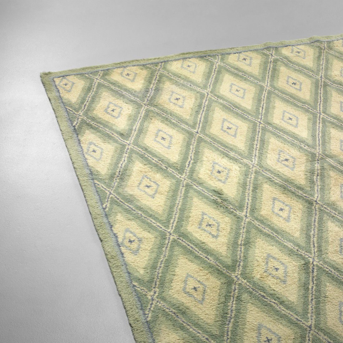 SoldAlberto Pinto designed, room-size Irish carpetAlberto Pinto designed, room-size Irish carpet, c. 2004, The Dixon Carpet Company (formerly V'Soske Joyce Ltd), Carlow wool and linen, handmade in Ireland, bright blue and white geometric design, labeSee Sold Price