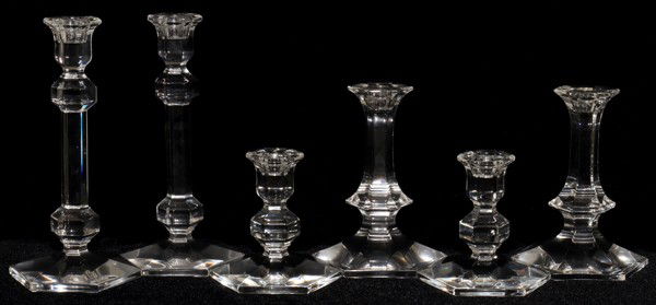 VAL ST. LAMBERT CRYSTAL CANDLESTICKS, 3 PAIRS