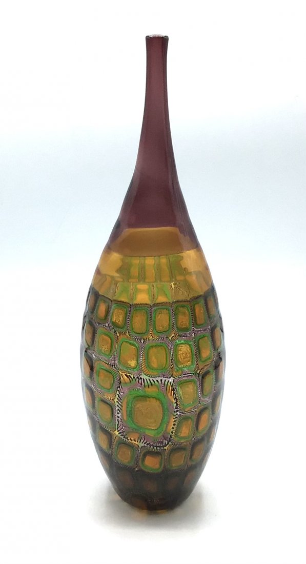 SoldJames Carpenter Venini Signed Tessuto Patchwork vase dated 1985 MuranoJames Carpenter Venini Signed Tessuto Patchwork vase dated 1985 MuranoSee Sold Price