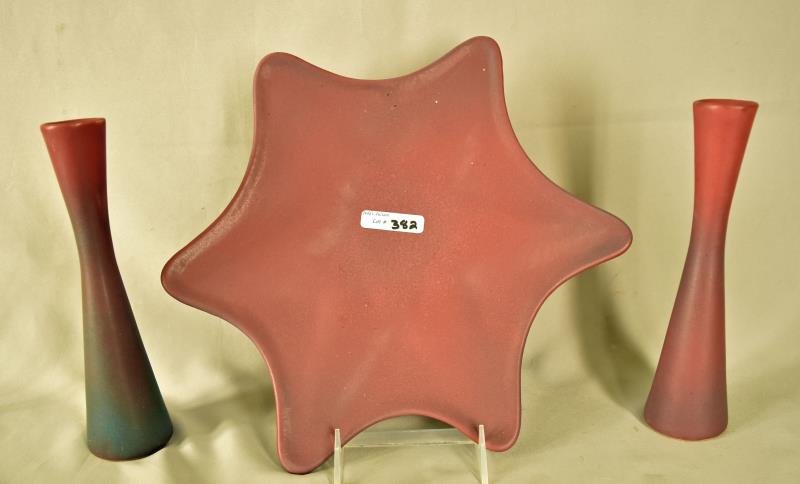 Van Briggle Tapering Candlesticks & Star Tray