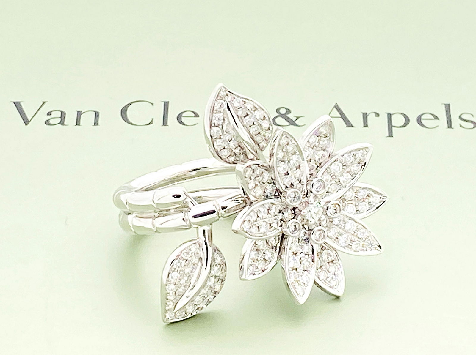 Van Cleef & Arpels 18K White Gold Lotus Ring EU 49 with CertificateBidhaus4.2(842)$100(1 bid)635 Lots Away