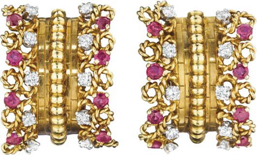 18K Yellow Gold 6.00ct Diamond and 5.40ct Ruby Earrings, Yellow gold - 11.40ct. tw. DiamondEastern European Art Gallery Inc$5003 hrs Left
