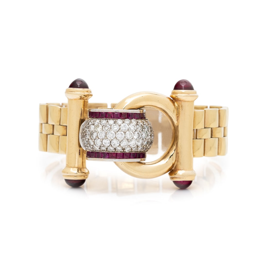 A ruby, diamond and 18K yellow gold bracelet,length approximately 7in (17.75cm); width .5in (14mm)Andrew Jones Auctions4.7(227)$3,600(2 bids)6 days Left