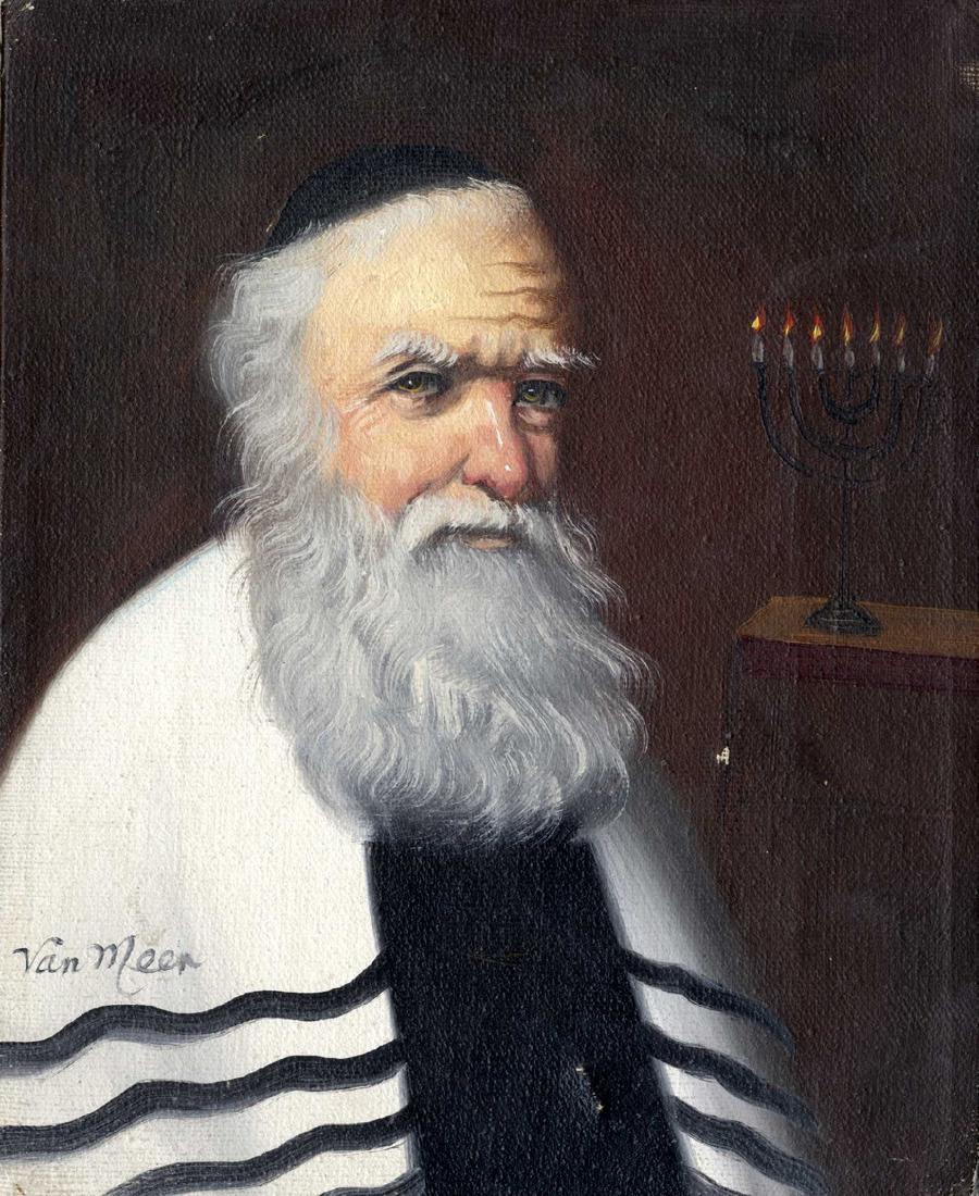 Van Meer. A Rabbi Studying by Candlelight. An Oil