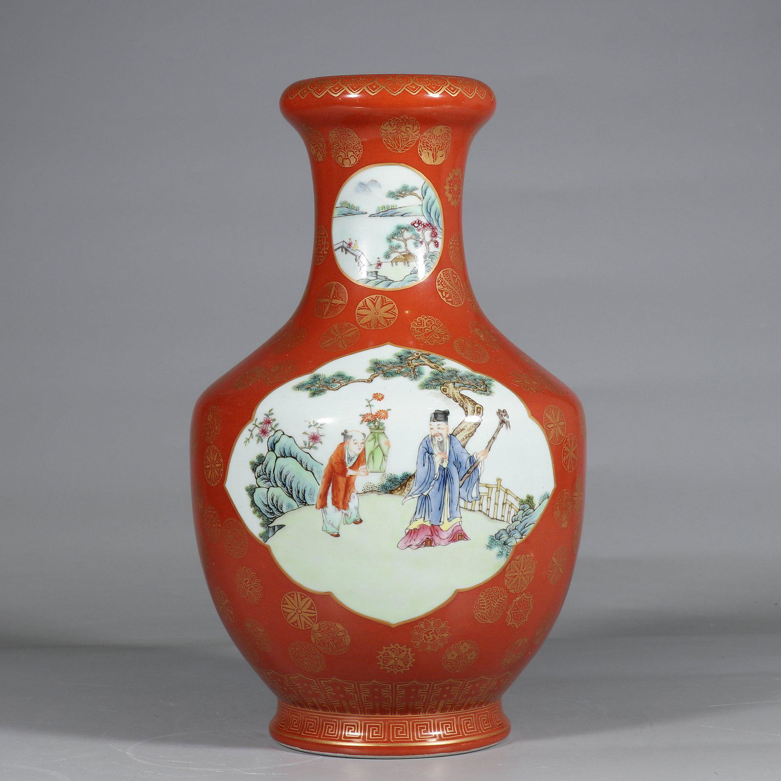 A Rare Coral Red Base Gilded Flower and Figure Pattern Gourd VaseSummer Auction4.7(275)$100Feb 26, 2026