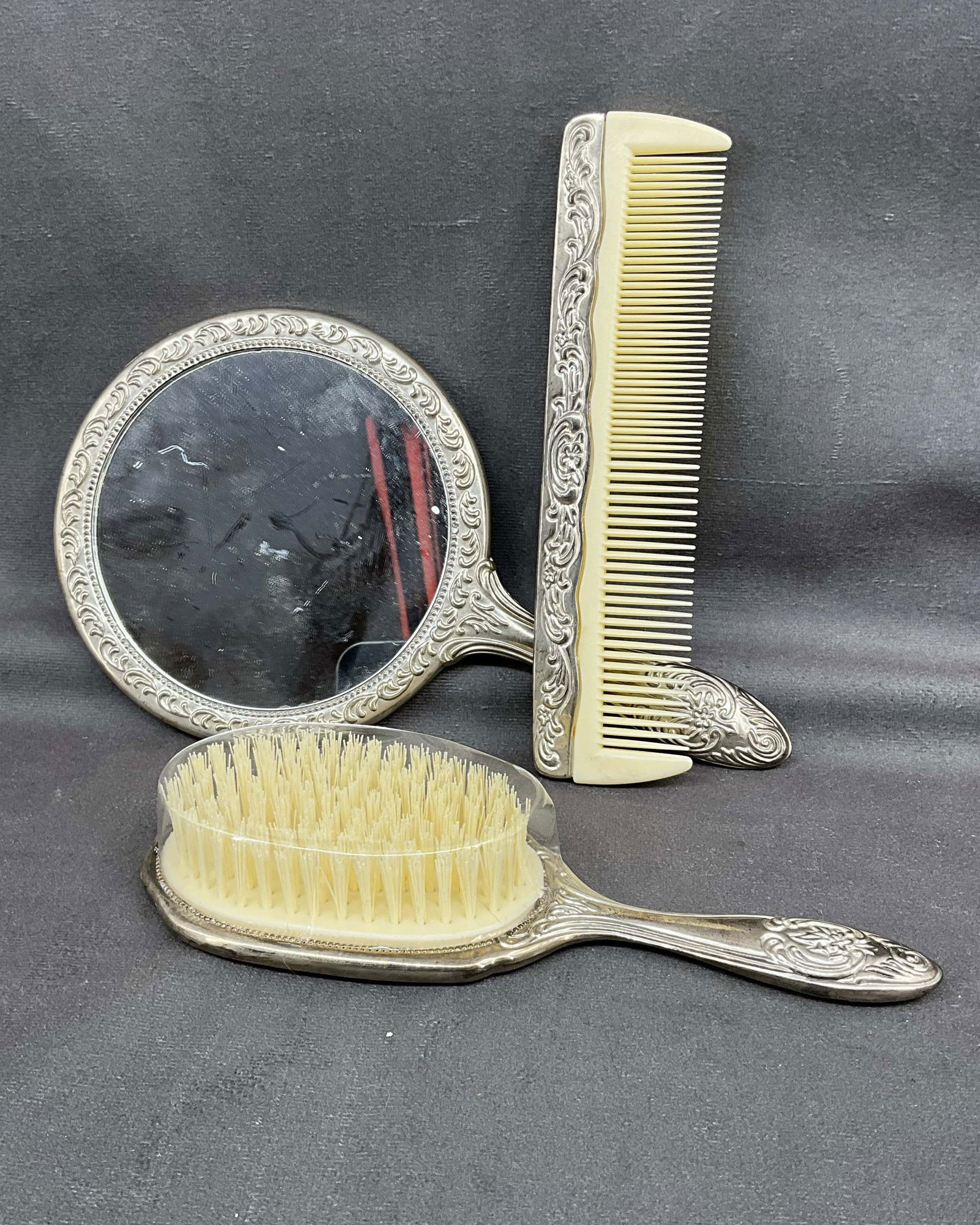 Vanity Set, 3 Piece Silver Tone