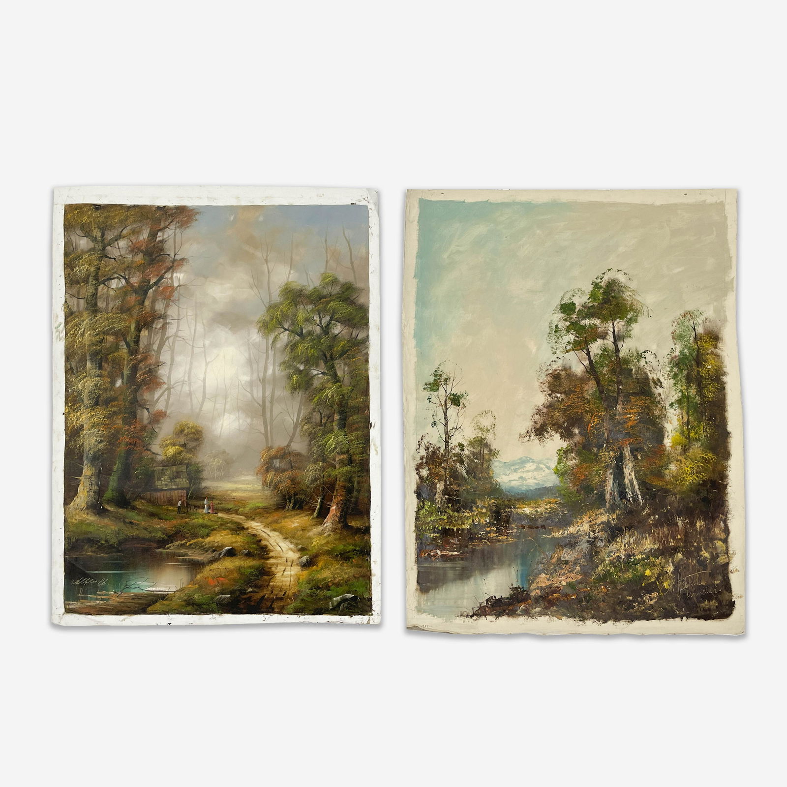 Vintage Scenic Oil On Canvas "Stream Near Woods"