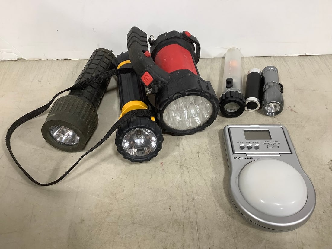 Various flashlights and hanging light