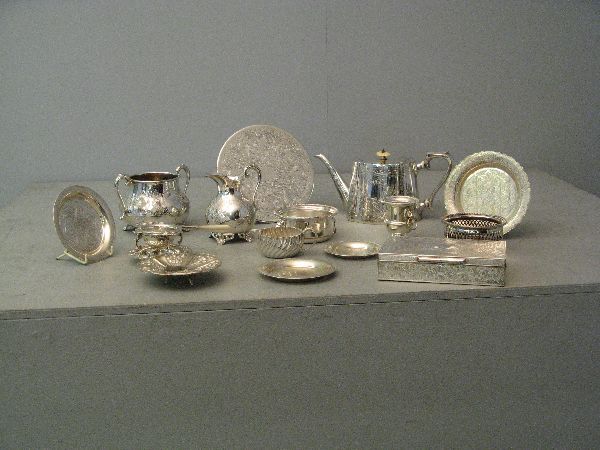 Large Lot of Silver-Plate2 days LeftLOT OF SILVER AND SILVERPLATE, 8" AND SMALLER4 days LeftGroup Lot of Silverplate1 day LeftGroup Lot of Silverplate Items1 day Left9PC LOT OF STERLING SILVER, 22 T.O.W.Mar 07, 2026(17) COLLECTION OF STERLING, .800 SILVER & WEIGHTED STERLING TABLE ARTICLESFeb 22, 202627pc Assorted Silverplate Pewter and etcMar 02, 2026Sterling Silver Estate TablewaresFeb 24, 2026Collection of silver consisting of pepper and salt shakers, jugs, bell, bowl and statue of a boy,4 days LeftA collection of silver items,Five Piece Silverplated Tea Service5 days LeftAssortment of Antique Silver Plate ArticlesLarge Group of Silver PlateFeb 21, 2026ANTIQUE AND VINTAGE SILVER PLATED TABLEWARESFeb 22, 2026William Adams, Etc. Silver Plate Tableware, 8 Pcs.Mar 12, 2026A Group of Sterling Silver Table Articles4 days Left