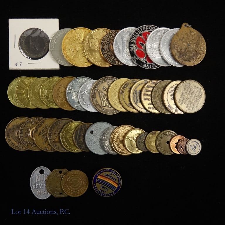 Coin Pendant Necklace Lot – Coin Charm Jewelry Accessories SetMar 04, 2026Bulk Lot of 25 Mixed Value Foreign World Coins2 days LeftLot of Fraternal Pins, Pendants and ClipsMar 05, 2026LOT OF VARIOUS ANTIQUE VINTAGE COINS TOKENS MEDALS5 days LeftLot of Circulated US and Foreign 3 Cent and Small Denomination Coins (7Pieces)1 day LeftUS 1898-1916 Barber Silver Coinage, Silver, A Lot of CoinsCoins, Various OriginsFeb 25, 2026COLLECTION OF 21 VINTAGE EXONUMIA PIECES MEDALS TOKENSMar 01, 2026Collection of Assorted American Trade Tokens Scrip Base Metal1 day LeftCoins, Various OriginsFeb 25, 2026Mixed Metal Collection of American Transit and Commemorative Tokens1 day LeftA Lot of US 1943 Lincoln Steel Cents, Zinc-Plated Steel, KM-132aCollection of US and World Silver CoinsMar 01, 2026LARGE ASSORTMENT OF FOREIGN COINS, TOKENS, US COINS AND MORE, SEE ALL PICS, SEVERAL OLDER COINS4 days LeftUnited States, International Coins and Commemoratives Including American Coin Albums (400+)Feb 23, 2026Mt. Hope Bridge Division One Fare Passenger Car Or Motorcycle Transit Token Coin Set Four TokensJun 27, 2025