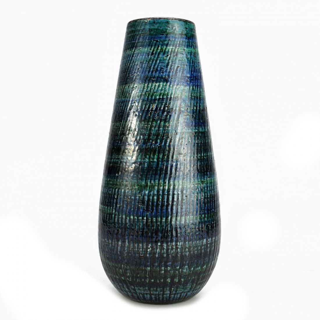 Berndt Friberg for Gustavsberg. Unika Studiohand keramikvase med smal hals. Glasur i lysebruneRolf Fagerberg, Swedish ceramicist. Ceramic jar. Cream colored with abstract motifs. Late 20th C.Hertha Bengtsson for Rörstrand Atelje. Large cylindrical ceramic vase. Modernist design. Ca.Thomas Nittsjö, Sweden. Large ceramic vase with blue glaze. Handmade.Vicke Lindstrand for Ekeby. "Marianne" ceramic vase. Brown and cream-colored glaze.Søholm, Bornholm, Denmark. Ceramic vase. Abstract design. Glaze in blue shades.Aldo Londi (1911-2003) for Bitossi, Italy. Large ceramic vase with azure blue glaze.Mari Simmulson (1911-2000) for Upsala Ekeby, Sweden. Ceramic vase with glaze in blue and brownNoomi Backhausen and Poul Brandborg for Søholm Keramik, Bornholm. A pair of vases in stoneware,Mari Simmulson for Upsala Ekeby, Sweden. Onyx ceramic vase with glaze in black hues. The lower halfIngrid Atterberg for Upsala Ekeby, Sweden. Ceramic vase with glaze in brown hues.Svend Hammershøi for Kähler. Early and rare ceramic vase. Floral relief pattern. Approx.Nils Kähler for Kähle. Cylindrical ceramic vase with azure glaze. 1960s/70s.John Andersson for Höganäs, Sweden. Ceramic vase with glaze in brown-green tones. Approx.John Andersson for Höganäs, Sweden. Ceramic vase with glaze in brownish and violet tones.Carl Harry Stålhane (1920-1990) for Rörstrand, Sweden. Large vase in hare's fur glaze with