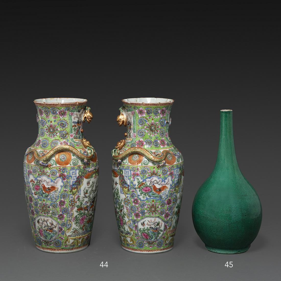 A lot of three variously decorated and shaped Chinese porcelain vases3 days LeftA lot of three Chinese Qianjiang and Famille Rose variously decorated porcelain vases3 days LeftLot of 3 Chinese Cloisonne Enamel Vessels,Qing Dynasty22 hrs LeftChinese Export, Famille Rose urn and pair of vasesMar 05, 2026Three oriental vases in glazed porcelain, 19th - 20th century4 days LeftVintage Green Glaze Vase Porcelain Chinese Vessel16 hrs Left3 Chinese Cloisonne VasesMar 14, 2026A Chinese Qianjiang cylindrical shaped porcelain hat vase, together with a decorated Nankin vase3 days LeftANTIQUE CHINESE FAMILLE VERTE WUCAI PORCELAIN VASE22 hrs Left3 Chinese Cloisonne VasesMar 14, 2026Pair of Porcelain Celadon Vase Raised Floral DesignMar 01, 2026Group of Three Green Art Glass and Porcelain VasesMar 05, 2026Qing Dynasty Qianlong Green Famille Rose Fushou Auspicious VaseMar 06, 2026Lots Chinese porcelain vaseMar 05, 2026A pair of large Chinese Famille verte style French Samson florally decorated covered porcelain vases3 days LeftA Collection of Chinese StonewareMar 03, 2026