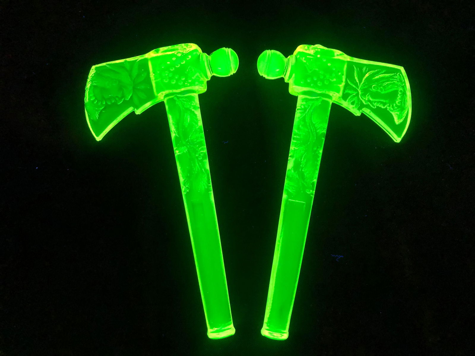 VASELINE GLASS NATIVE AMERICAN STYLE HATCHETS