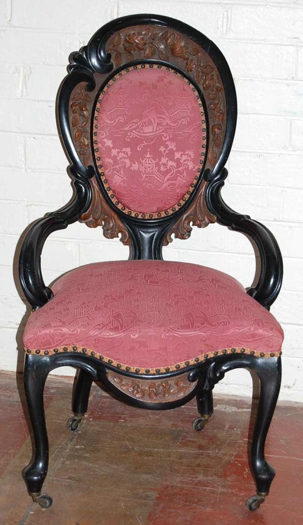 SoldUnusual rounded back Eastlake parlor chairUnusual rounded back Eastlake parlor chair, 41 in. T, 29 in. W, 21 in. D.See Sold Price