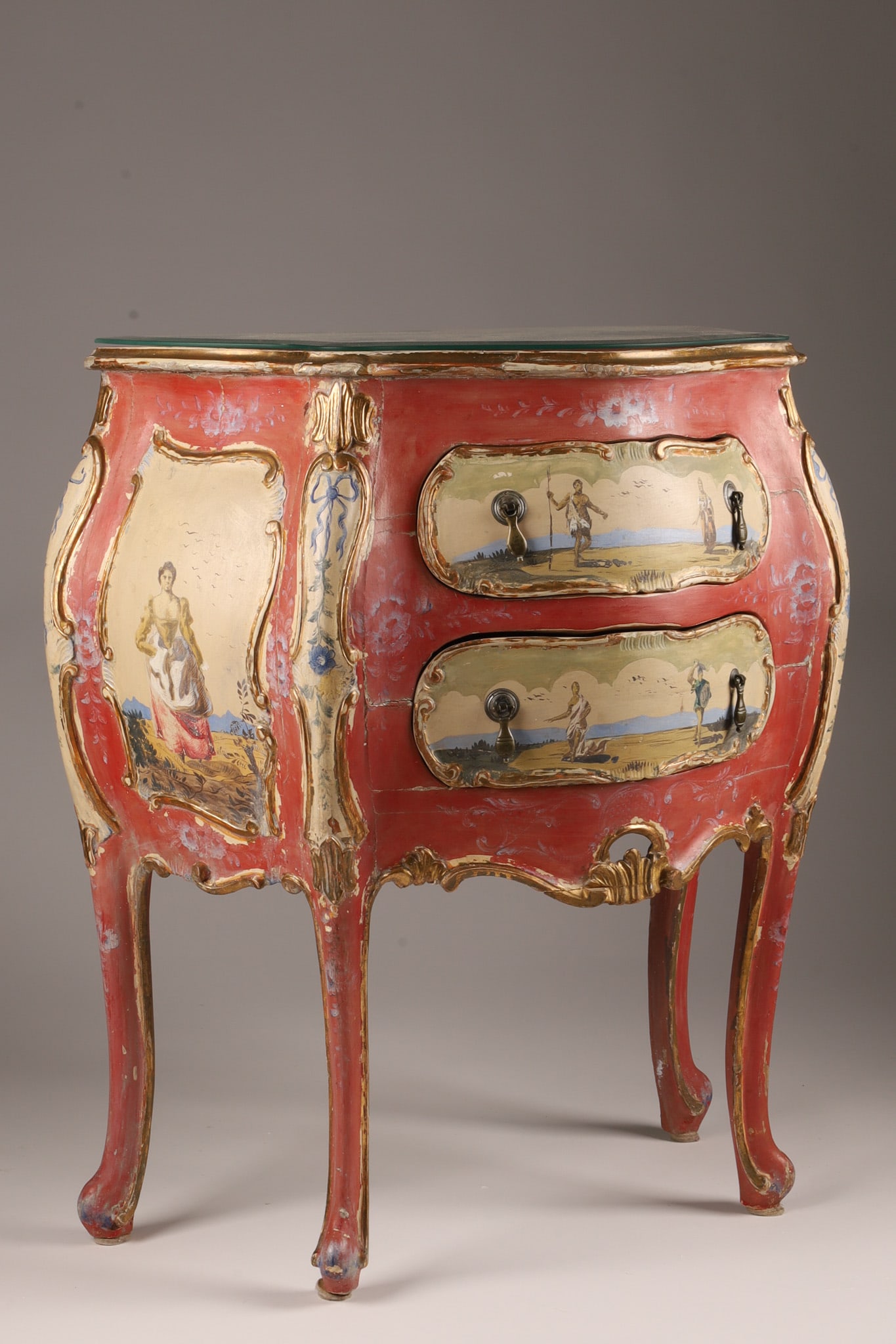 Venetian Rococo Style Painted Bombe Commode