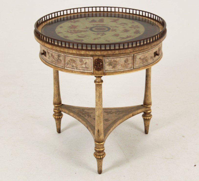 Vintage Chippendale Style Pie Crust Tilt Top Table by Kindel Furniture Co.Neoclassical, Maison Jansen Style Round Gilt Metal Coffee Table, Side TableBeautiful Neoclassical Inlaid Pedestal Table2 days LeftTheodore Alexander Mahogany Brass Inlaid Circular Table3 days LeftLouis XVI Style Gilded Wood & Marble Oval Table17 hrs LeftLouis XVI StyleBrass-Mounted Mahogany Bouillotte TableFeb 12, 2026Louis XV Style Kingwood Marquetry Bouillotte TableMar 05, 2026Italian Gold Gilt Center Table with Beveled Glass Top7 days LeftLARGE LOUIS XVI STYLE TESSELLATED-TOP CENTER TABLE, 60"DIAMFeb 20, 2026LOUIS XVI STYLE ORMOLU-MOUNTED & POLYCHROME INLAID SALON TABLEFeb 22, 2026Antique French Style Mahogany Gueridon Table with Inlaid Top & Gilt Bronze MountsFeb 12, 2026ITALIAN MARQUETRY TILT-TOP CENTER TABLE, 58.75"DIAMFeb 22, 2026Louis XV Style Brass Mounted Inlaid Marquetry Table, 20th Century16 hrs LeftWoodbridge Cumulus Circular Cocktail Table 18H 52W 52D4 days Left19th C. Gold Finish Cast Iron Cafe or Bistro Table w Marble TopMar 07, 2026A FINE FRENCH GILT BRONZE MOUNTED AND MARQUETRY INLAID SIDE TABLE, CIRCA 1890Feb 15, 2026