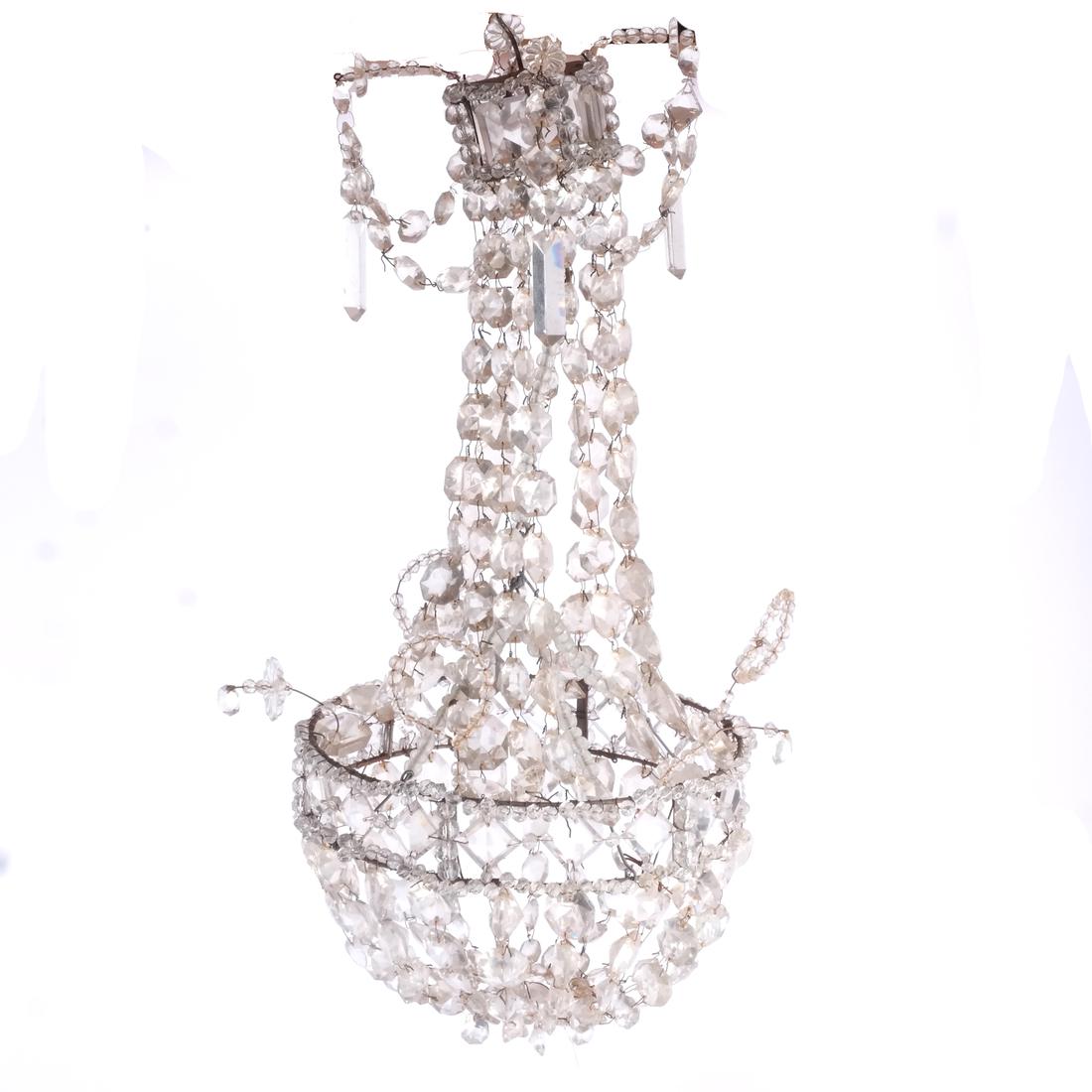 SoldEarly 20th Century Venetian Crystal ChandelierThis Italian chandelier was made in Venice during the early half of the 20th century, circa 1930, and features a bird cage style frame with three candles decorated with crystal swag and French drops.See Sold Price