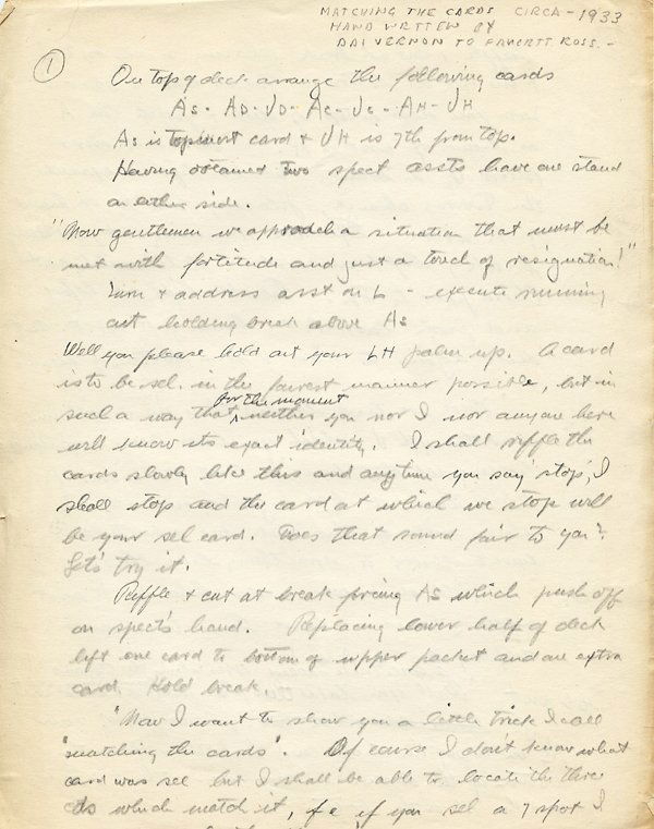 Vernon, Dai. Handwritten instructions for Matching
