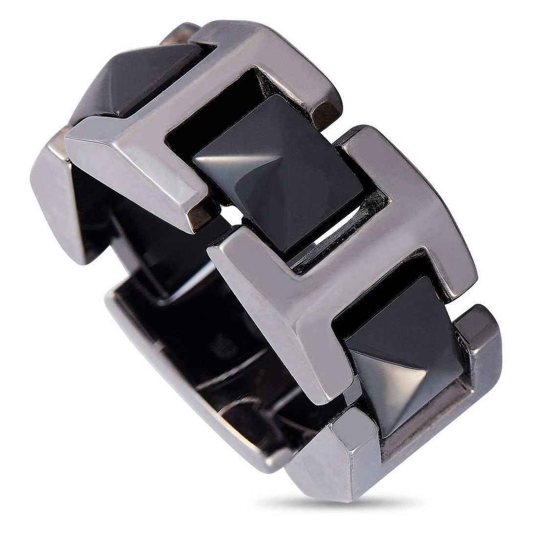 SoldVersace Solid 18K Yellow Gold & White Ceramic RingVersace Solid 18K Yellow Gold & White Ceramic Ring - This lovely ring by Versace was finely crafted of solid 18k yellow gold with white ceramic pyramid studs. The ring has an articulated, flexible desSee Sold Price