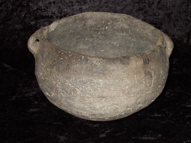 Very fine and solid 5 7/8" strap handle pottery bow