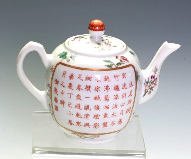 An Exquisite Guan yao Famille-Rose Painted Gold Flower Pattern TeapotMar 28, 2026Chinese Porcelain Tea Pot,Mar 14, 2026A Chinese famille rose 'Ta Xue Xun Mei' teapot and cover, Yongzheng/QianlongMar 19, 2026Rare Chinese Enameled on Zisha Tea PotMar 20, 2026Qianlong Year of the Qing Dynasty Famille Rose Figure Gold-Painted Teapot22 hrs LeftAn Exquisite Famille-Rose Flower and Bird Pattern Ewer,With PoemApr 04, 2026A teapot made in the Qianlong period of the Qing Dynasty with enamel white ape inscriptions2 days LeftA foreign color pink blue glaze Sanqing tea poetry pot made in the Qing Dynasty2 days LeftAn Exquisite Famille-Rose Ruby Red-Glazed Lotus Pattern Flower and Butterfly Pattern Teapot17 hrs LeftA Chinese Canton famille rose 'Mandarin Subject' teapot, QianlongMar 19, 2026teapot with a handle decorated with a full-painted design of "Grand Tutor and Junior Guardian /6 hrs LeftAn Exquisite Famille-Rose Painted Gold Flower and Bird Pattern Ewer,With PoemApr 07, 2026An Exquisite Enamel Bats and Peach Pattern TeapotMar 24, 2026A bean celadon imperial poem auction teapot made in the Qianlong period of the Qing DynastyMar 22, 2026A Chinese famille rose 'Mythological Subject' teapot and cover, QianlongMar 19, 2026A Chinese famille rose teapot and seven tea cups, Republic periodMar 21, 2026