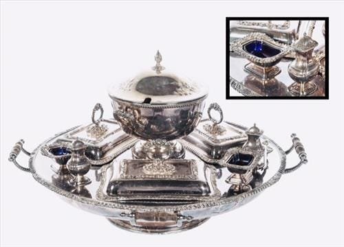 BOIN-TABURET, FABERGE - 8pc. FRENCH ANTIQUE 950 STERLING SILVER TEA SET + 6 FABERGE ESPRESSO CUPS !Large Silver Plate Punch Bowl Set with Twelve Cups, Ladle, and TrayMar 07, 2026Rococo Style Silver Plate Coffee And Tea Set (7-piece), C. Mid-late 20th Century4 days LeftFive-Piece Silverplate Tea and Coffee Service with Large Serving TrayMar 07, 2026COLLECTION OF SILVERPLATEMar 06, 2026Excellent English George III Silver Plate Centerpiece by Matthew Bolton6 days LeftElegant 7 Piece 925 Sterling Silver Floral Leaf Epergne Centerpiece6 days LeftVictorian Silver-plated Motif Table GarnitureMar 05, 2026COLLECTION OF SILVERPLATEMar 06, 2026Silverplate TrayThree-Piece Silverplate & Glass Table Garniture4 days LeftA Chinese Export Silver Assembled Tea ServiceMar 04, 2026Handmade 925 Sterling Silver Honey Dish Tray Set Floral Design7 days LeftSTERLING SILVER SOUP TUREEN ANTIQUEMar 03, 2026SILVERPLATE TEA AND COFFEE SERVICE4 hrs LeftTomas Bradbury Sterling Silver Epergne Centerpiece Bowl 1897Mar 01, 2026
