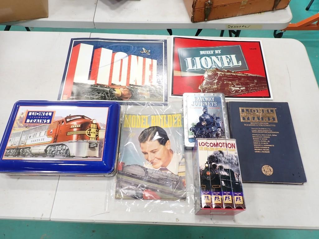 Train Lot incl Metal Lionel Signs, DVDs, VHS, Books, Tin, etc