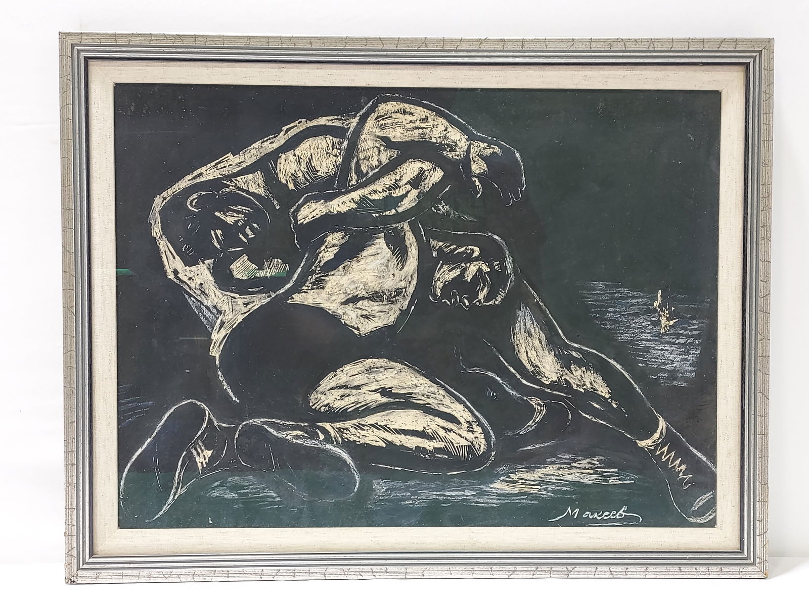 VICTOR MAKEEV SOVIET BRUTALIST SGRAFFITO PAINTING