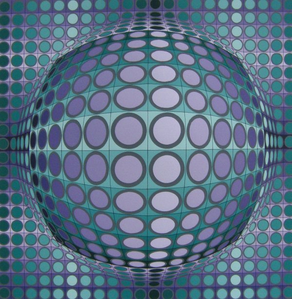 Sold*VASARELY, VICTOR(1908-1997 Hungarian/French) Geometric abstract, unframed serigraph, signed in pencil lower right and numbered from edition of 325 impressions lower left, approximate image size by sight 35 3/4" x 18See Sold Price