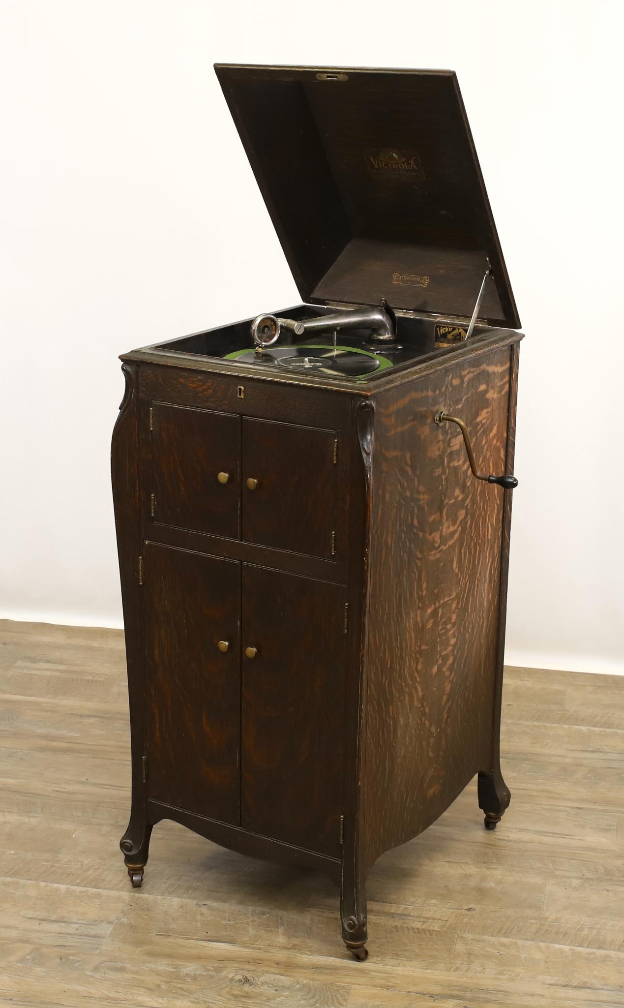 SoldVictor Victoria Talking MachineNo. VV-X 2011. Oak Case With record compartments. In working condition. 45"h x 20"w x 23"d **Please Note: This item is NOT eligible for in-house shipping. Please refer to the terms and conditions of tSee Sold Price