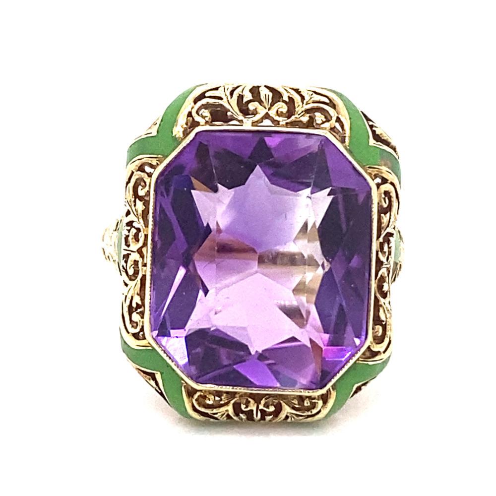 Vintage 14K Yellow Gold Amethyst Diamond Cocktail Ring with EnamelDiamond Depot4.3(10)$1,3251 day Left