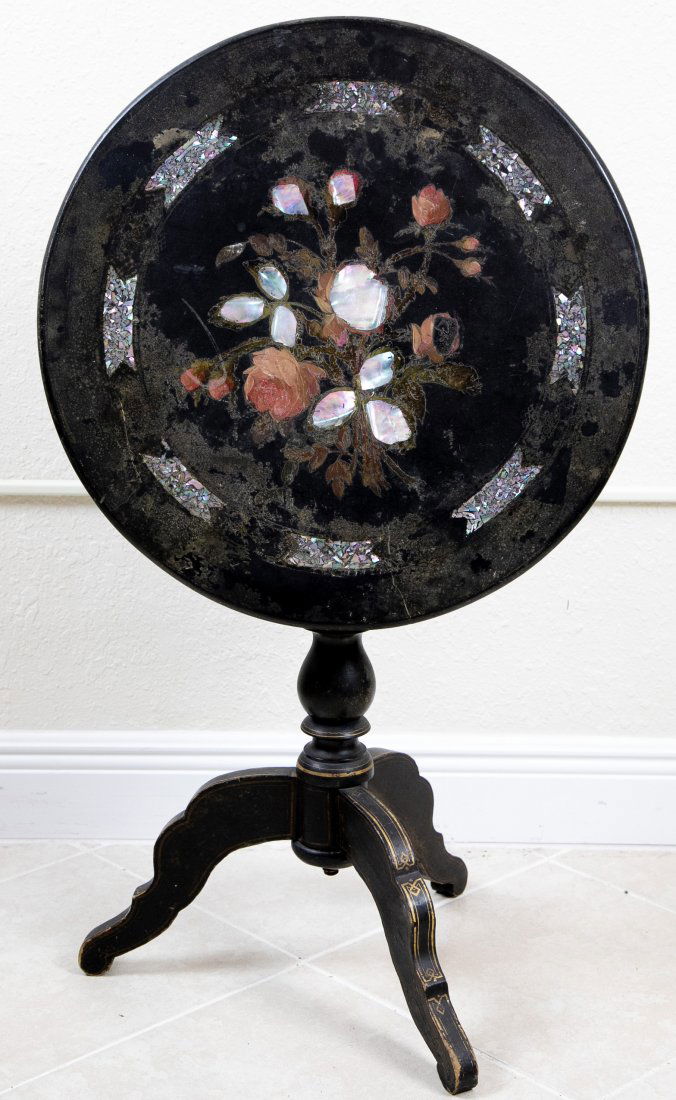 Victorian Mother-of-Pearl Inlaid Lacquer Table3 days LeftVICTORIAN TILT-TOP CAST IRON PARLOR TABLEFeb 22, 2026George III Japanned tilt top tea tableFeb 20, 202619TH C. DUTCH MARQUETRY TILT TOP TABLEFeb 21, 2026Victorian Rosewood Tilt Top Table84 Lots AwayEarly 20th Century Hand Painted Mahogany Tilt Top TableTilt-top Mahogany Tea Table, 19th century,CHIPPENDALE MAHOGANY TILT-TOP TABLE 18th Century Height 27". Top diameter 27".Feb 18, 2026Chinese famille rose large pot made table with glass top signed Qing dynasty QianlongMar 02, 2026Theodore Alexander George II Mahogany Tilt Top Table Repolioca Collection666 Lots AwayA FINE FRENCH GILT BRONZE MOUNTED AND MARQUETRY INLAID SIDE TABLE, CIRCA 1890Feb 15, 2026FANCY VICTORIAN PARLOR TABLE3 hrs LeftCUSTOM PAINTED OVAL COFFEE TABLEFeb 22, 2026PAINTED OCTAGONAL STANDFeb 22, 2026Early 19th Century Mahogany Scalloped Tilt Top Table488 Lots AwayANGLO-INDIAN SPECIMEN WOOD INLAID EBONIZED PEDESTAL TABLEFeb 22, 2026