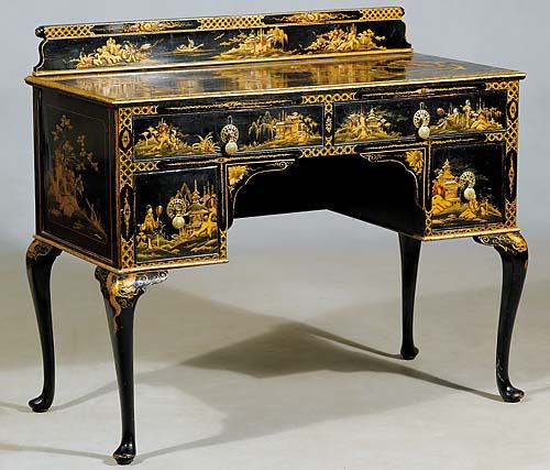 Black Lacquered Campaign Chest, Dresser or Commode, Hollywood Regency, ParzingerNeoclassical Style Ebonized Writing Desk3 days LeftVintage Black Lacquer Secretary Desk with Chinoiserie Decoration4 days LeftFrench Brass Inlaid Ebonized Bookcase with Sevres Plaques c.1820Louis XV Style Marquetry Inlaid Brass Bound DeskChinoiserie decorated 3 drawer writing desk in black lacquerMar 08, 2026A BLACK AND GILT CHINOISERIE LAQUERED CENTER TABLE, THE TOP POSSIBLY 18TH CENTURY, THE STAND LATERThree Drawer Chinoiserie Style Dresser3 days LeftA Chinese Export ebonized wood writing tableMar 03, 2026A BLACK LACQUER AND CHINOISERIE CHEST OF DRAWERS, PROBABY ENGLISH, THIRD QUARTER 18TH CENTURYFine Louis XV Chinoiserie Decorated and Bronze Mounted Petit Commode1 day LeftChinese Style Lacquered Console4 days LeftChinoiserie Gilt and Black Lacquered Low TableApr 07, 2026Antique Chinese Black Lacquer Carved Dragon DeskMar 03, 2026Louis XV Style Bronze Mounted Mahogany Writing TableMar 12, 2026Kindel Chinoiserie Queen Anne-style Highboy4 days Left