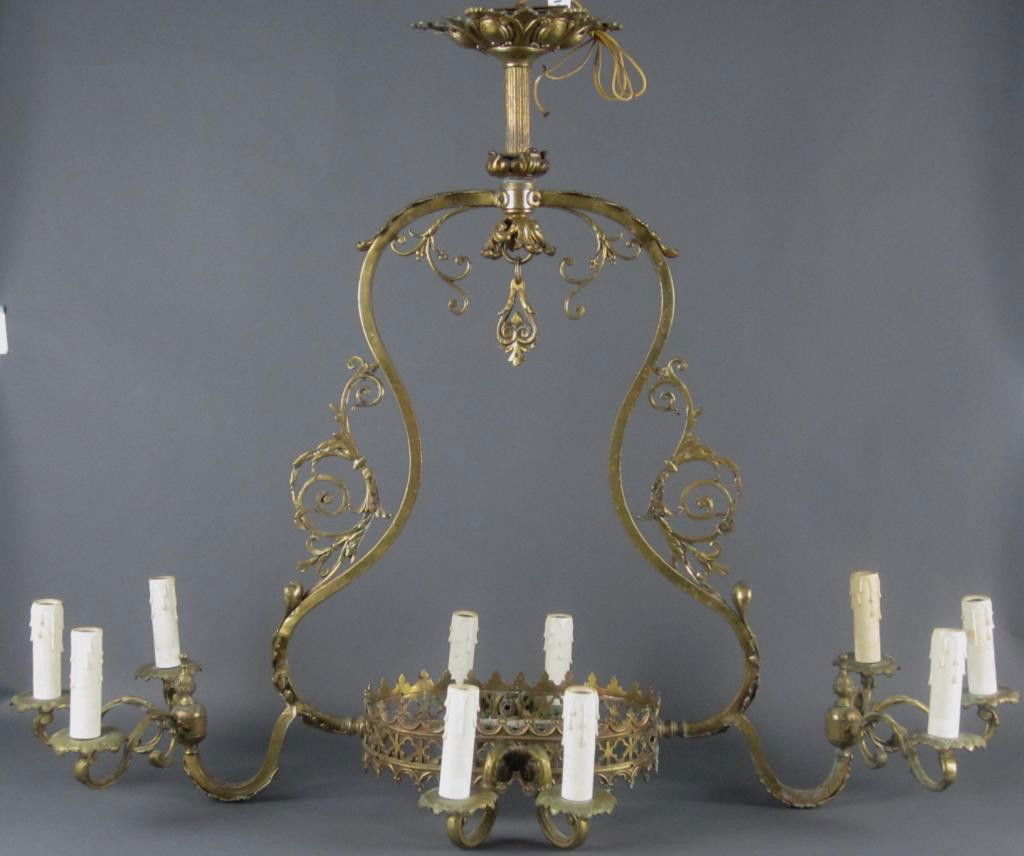 VICTORIAN BRASS 10-LIGHT SCROLLWORK FIXTURE