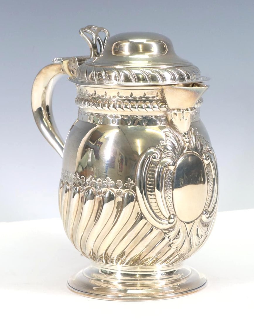 19th Century Antique Victorian Sterling Silver & Crystal Claret Jug London 1859 George Richards &Antique 19thC Jones, Ball & Poor American Pure Coin Silver Boston Ewer w/Chased DesignMar 29, 202617th Century Antique Charles II Silver Large Porringer & Cover London 1684 Richard MarchantVictorian Silver-Plated Lidded Jug by James Dixon & SonsA fine English Victorian sterling silver ewer / jug, 1872Mar 15, 2026Philemon Stacy Boston, Mass. early 19th century American silver water pitcher by rare Boston makerMar 01, 2026Kayserzinn Art Nouveau Silver on Copper Flagon 16in Wave Motif Germany 1900sMar 03, 2026Handmade 925 Sterling Silver Chased Leaf Oil Pitcher 7.25 Inches6 days LeftGeorge III Sterling Silver Coffee PotMar 16, 2026Rare George III Silver Cream Pitcher, LondonMar 15, 2026Handmade 925 Sterling Silver Floral Pitcher 10 Inches2 days LeftEnglish Sterling Repousse Coffeepot, London, 19005 days LeftGelston Treadwell Coin Silver Sugar Bowl Japanesque Motifs 1850-18996 days LeftAmerican Sterling Silver Water PitcherMar 14, 2026British Silver Luster Earthenware Teapot C. 1820s1 day LeftEdward and John Bernard ENGLISH STERLING SILVER VICTORIAN WINE JUG Decanter LONDON 1853Mar 01, 2026