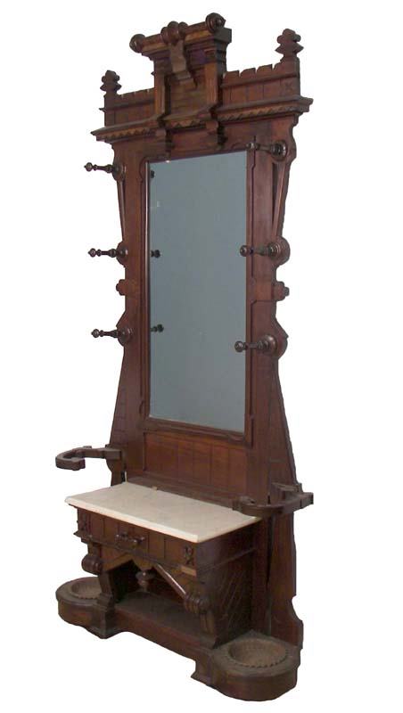 Victorian burled walnut marble top hall rack