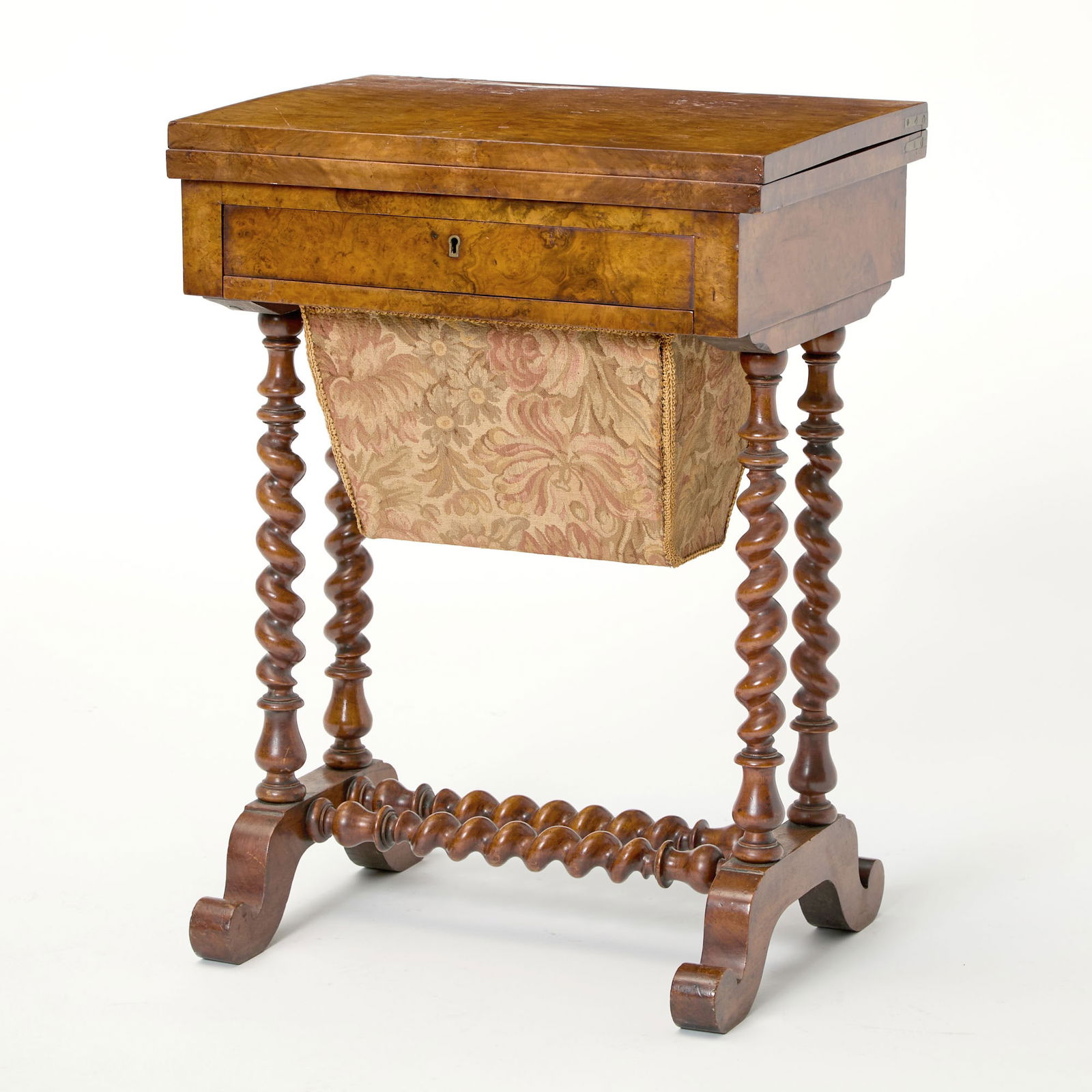 Victorian Burr Walnut Games Table/Sewing Table