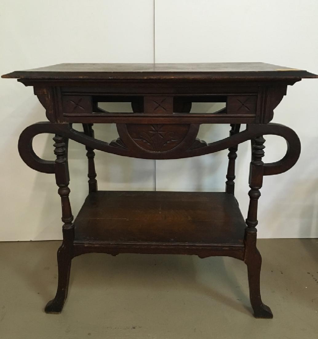 VICTORIAN CARVED OAK TABLE WITH BOTTOM SHELF
