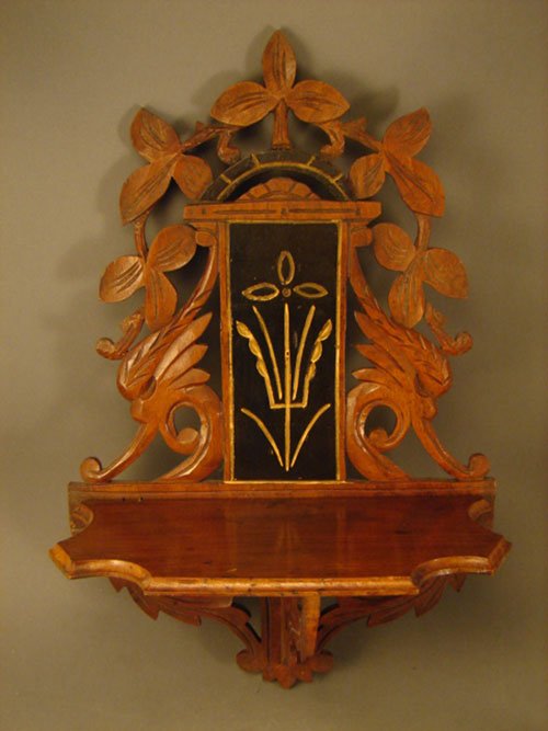 Victorian Scroll-Cut Wall Shelf with Lyre Motif