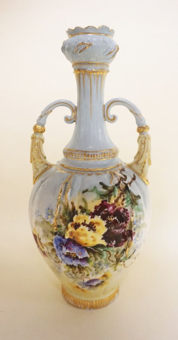 VICTORIAN CHINA HAND PAINTED DOUBLE HANDLED VASE