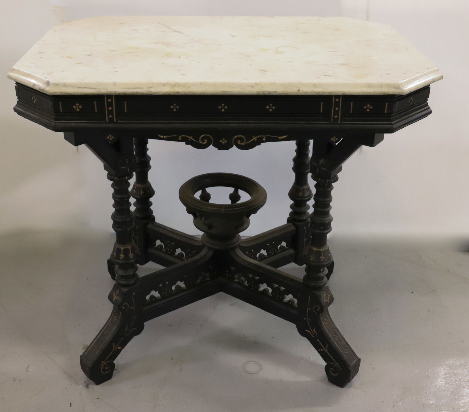 VICTORIAN EASTLAKE MARBLE TOP TABLE