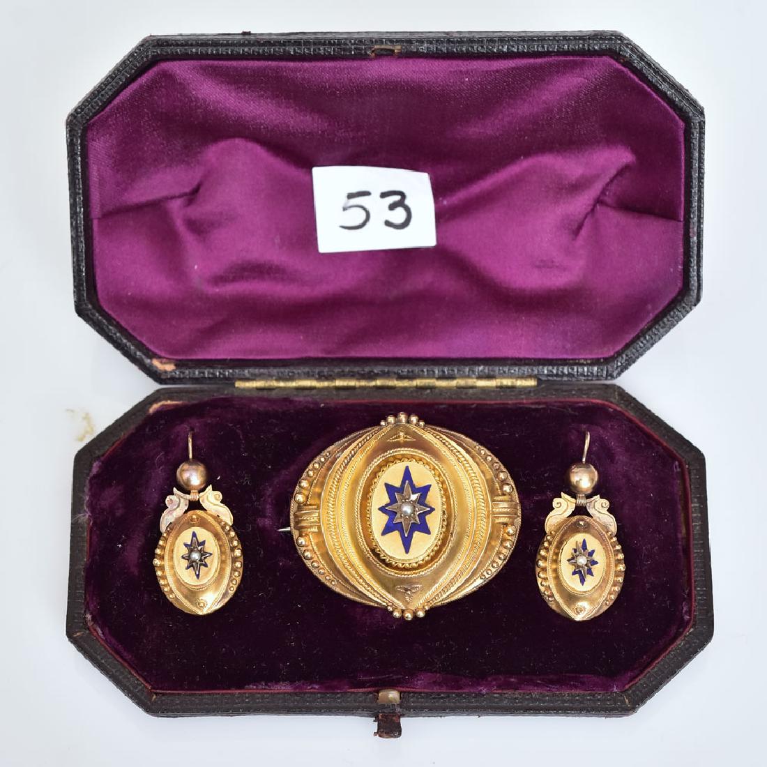 Victorian Enameled Brooch and Earring Set