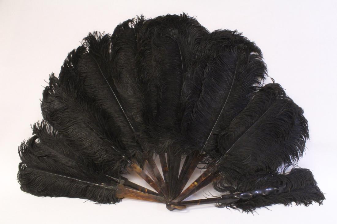 Victorian feather fan with tortoise shell frame