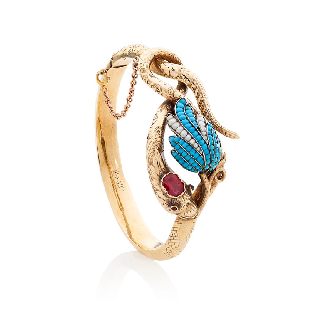 VICTORIAN GEM-SET YELLOW GOLD SERPENT BANGLE BRACELET