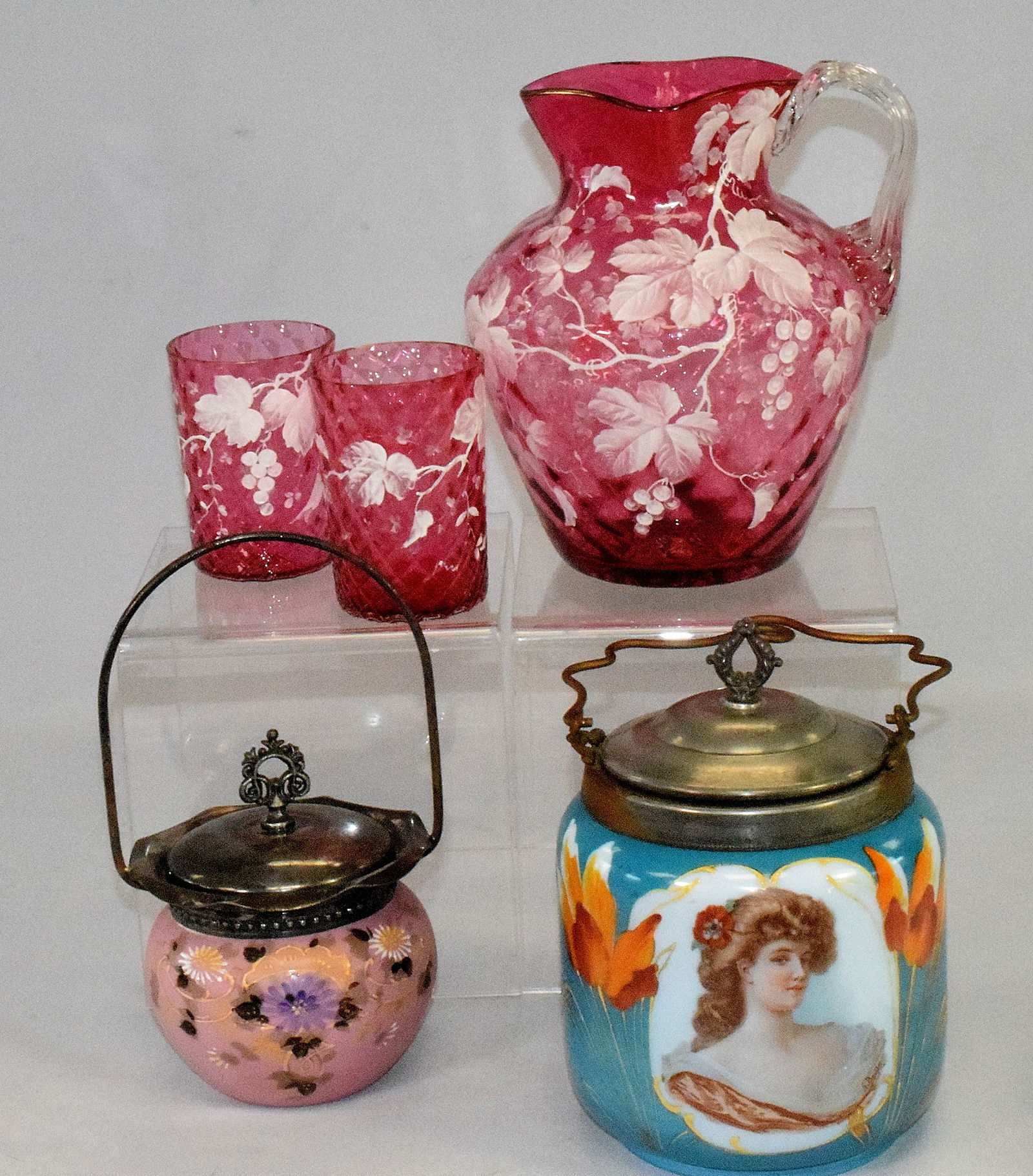 2 pc Lot Cranberry Opalescent Victorian Glass Water PitchersMagnum Auctions4.5(398)$10(1 bid)6 days Left
